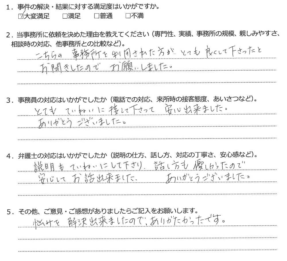 こちらの事務所を利用された方がとても良くして下さったとお聞きしたのでお願いしました。